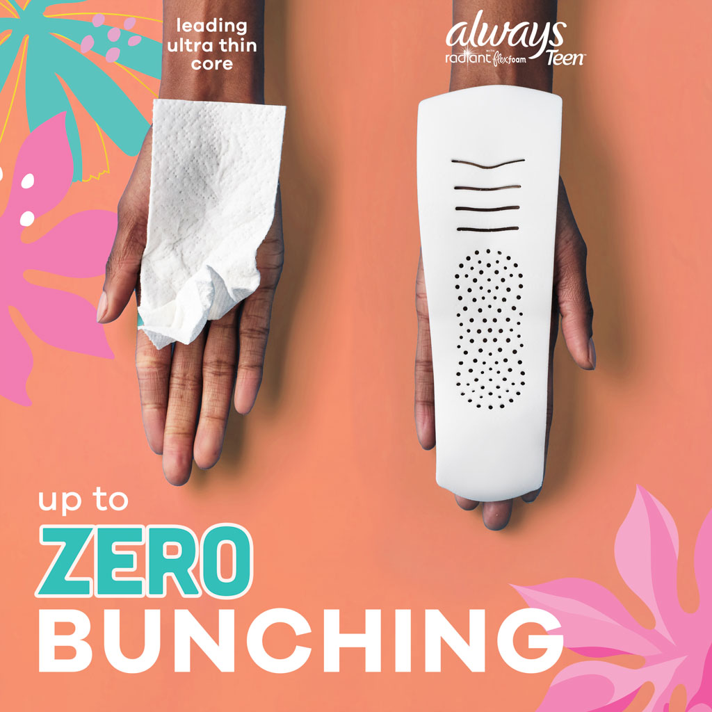 For those needing extra protection, try Always Radiant FlexFoam Overnight Absorbency period pads or Always Radiant FlexFoam Heavy Flow Overnight Absorbency period pads that offer up to 12 hours of zero leaks and zero feel, for overnight use. And for those who are on-the-go, try Always Pocket Flexfoam, powerful protection made portable. Always Flexfoam menstrual pads are also FSA/HSA eligible.
