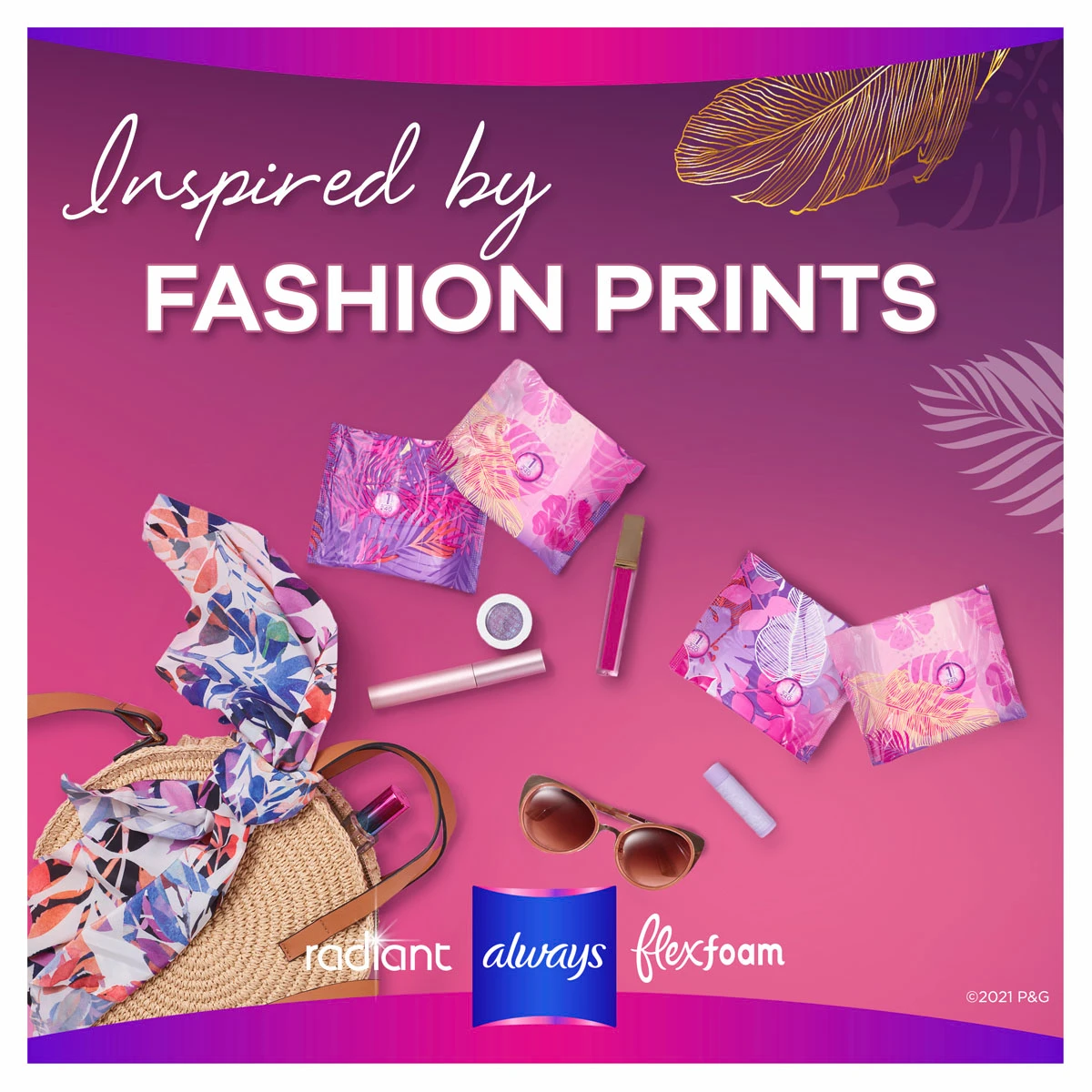 For those needing extra protection, try Always Radiant FlexFoam Overnight Absorbency period pads or Always Radiant FlexFoam Heavy Flow Overnight Absorbency period pads that offer up to 12 hours of zero leaks and zero feel, for overnight use. And for those who are on-the-go, try Always Pocket Flexfoam, powerful protection made portable. Always Flexfoam menstrual pads are also FSA/HSA eligible.
